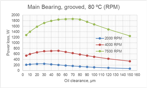 The most stable hydrodynamic regime of lubrication is established at the maximum value of minimum oil film thickness (MOFT). According to the graphs in Fig.3, the optimal values of oil clearance for the bearing are as follows: